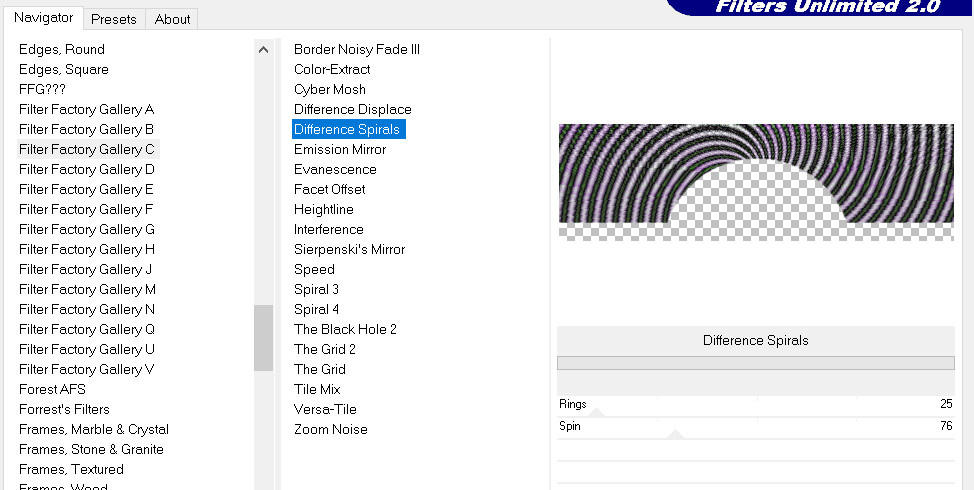 Effets / Unlimited 2.0 / Filter Factory Gallery C / Difference Spirals