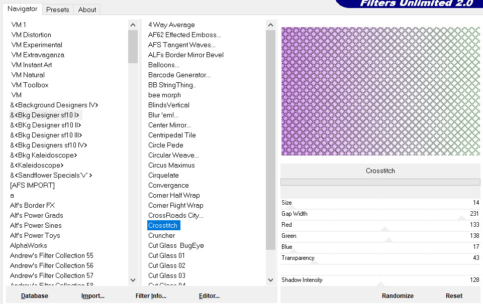 2 Effets / Unlimited 2.0 / &‹Bkg Designer sf10l› / Crosstitch par défaut