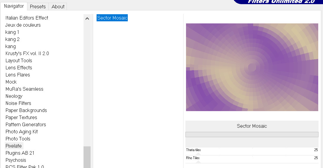 Effets / Unlimited 2.0 / Pixelate / Sector Mosaïc
