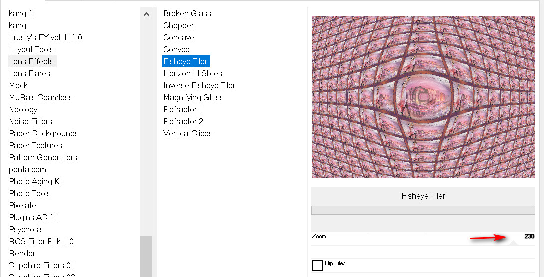 Effets / Unlimited 2.0 / Lens Effects / Fisheye Tiler