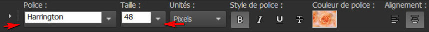 Prendre l’outil texte avec ces réglages et la police : « harrington »