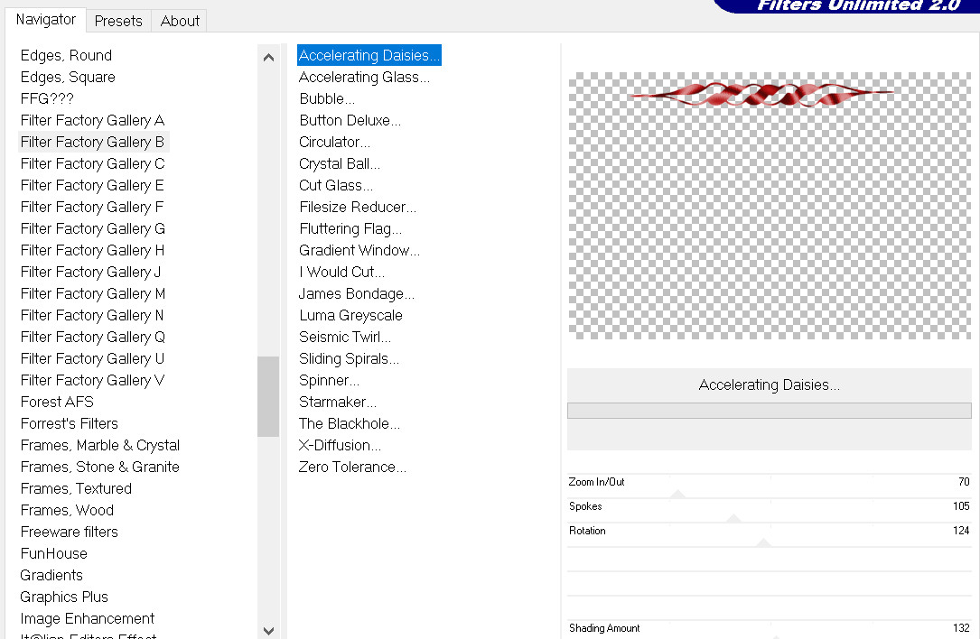 Effets / Unlimited 2.0 / Filter Factory Galery B / Accelerating Daisies