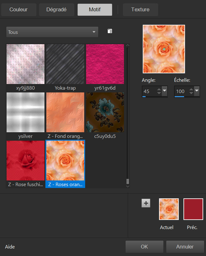 aller chercher le motif : « Z - Roses orangées cadre »
