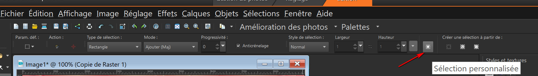 Avec l’outil sélection rectangle