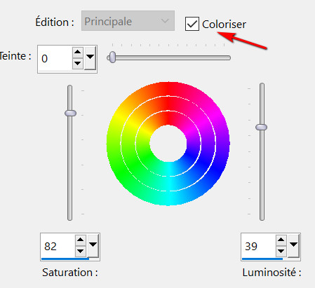 Réglage / teinte et saturation / teinte / saturation / luminosité
