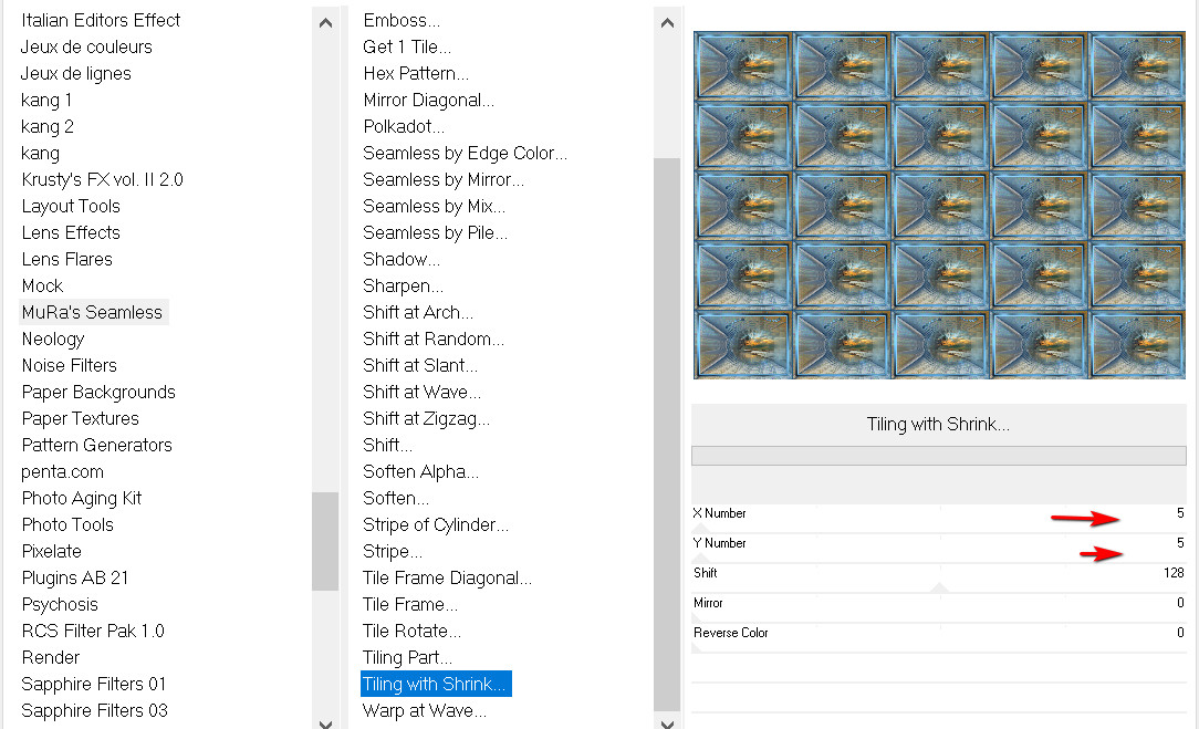 Effets / Unlimited 2.0 / Mura’s Seamless / Tiling With Shrink